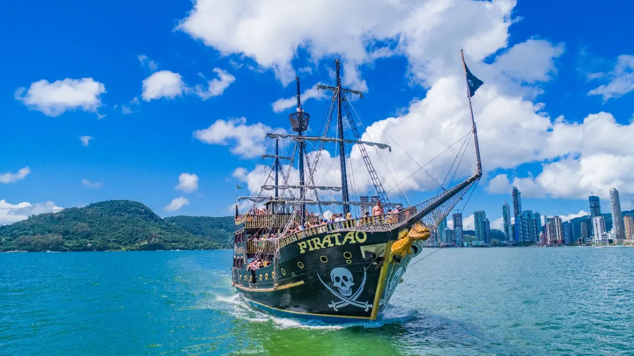 O Barco Pirata é um passeio temático onde personagens piratas interagem com o público com encenações, música e diversão. O trajeto inclui belas vistas da costa e passa por pontos turísticos como a Praia de Laranjeiras.