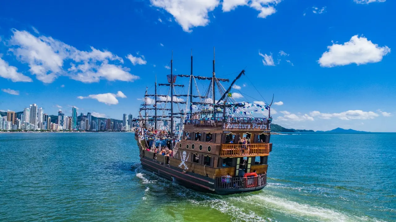 O Barco Pirata é uma das atrações mais tradicionais de Balneário Camboriú, oferecendo um passeio temático que leva os visitantes a uma aventura marítima divertida e cheia de surpresas. Com mais de 40 anos de história, o passeio é realizado em caravelas temáticas de madeira, onde uma tripulação de piratas proporciona uma experiência interativa com encenações, música e muita animação. O passeio percorre a orla central da cidade, passando pela Ilha das Cabras e terminando na Praia de Laranjeiras, onde os visitantes podem desfrutar da praia e retornar nos próximos barcos.