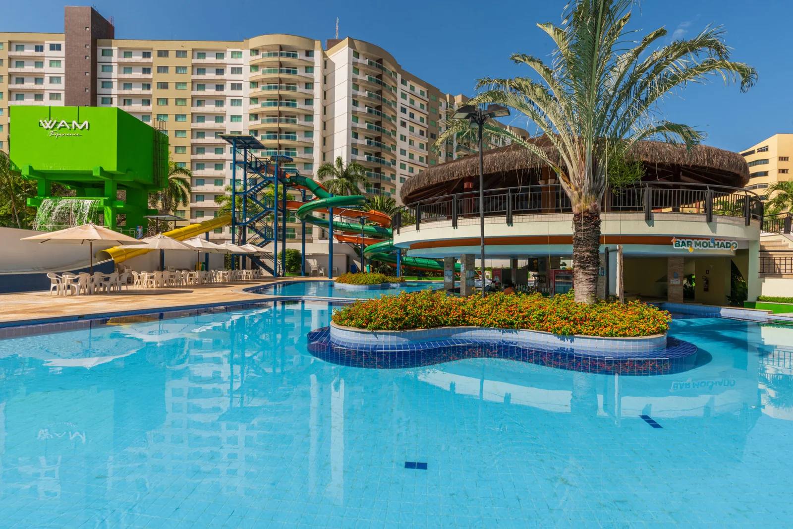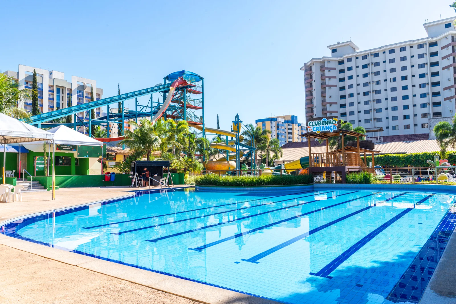O Clube Privé funciona como um parque aquático de águas termais no centro de Caldas Novas, oferecendo piscinas quentes, toboáguas, áreas infantis e atrações familiares, sendo uma opção prática para diversão durante todo o ano.