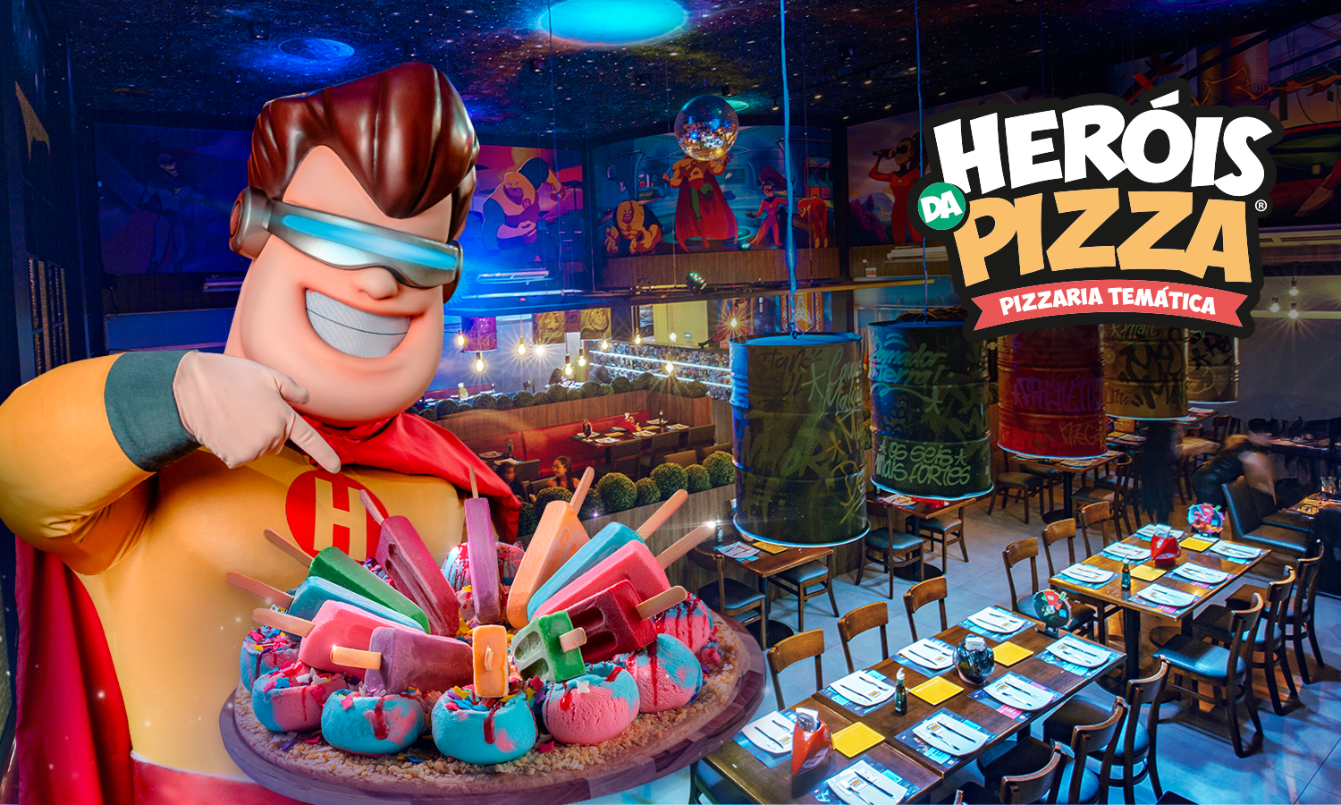A Heróis da Pizza é uma das pizzarias temáticas mais famosas de Santa Catarina, localizada no coração de Balneário Camboriú, e oferece uma experiência totalmente imersiva no universo dos super-heróis. A casa combina rodízio de pizzas com personagens caracterizados, cenários decorados e apresentações interativas que encantam crianças e adultos. O ambiente foi criado para proporcionar diversão em família, tornando o jantar uma verdadeira aventura gastronômica.