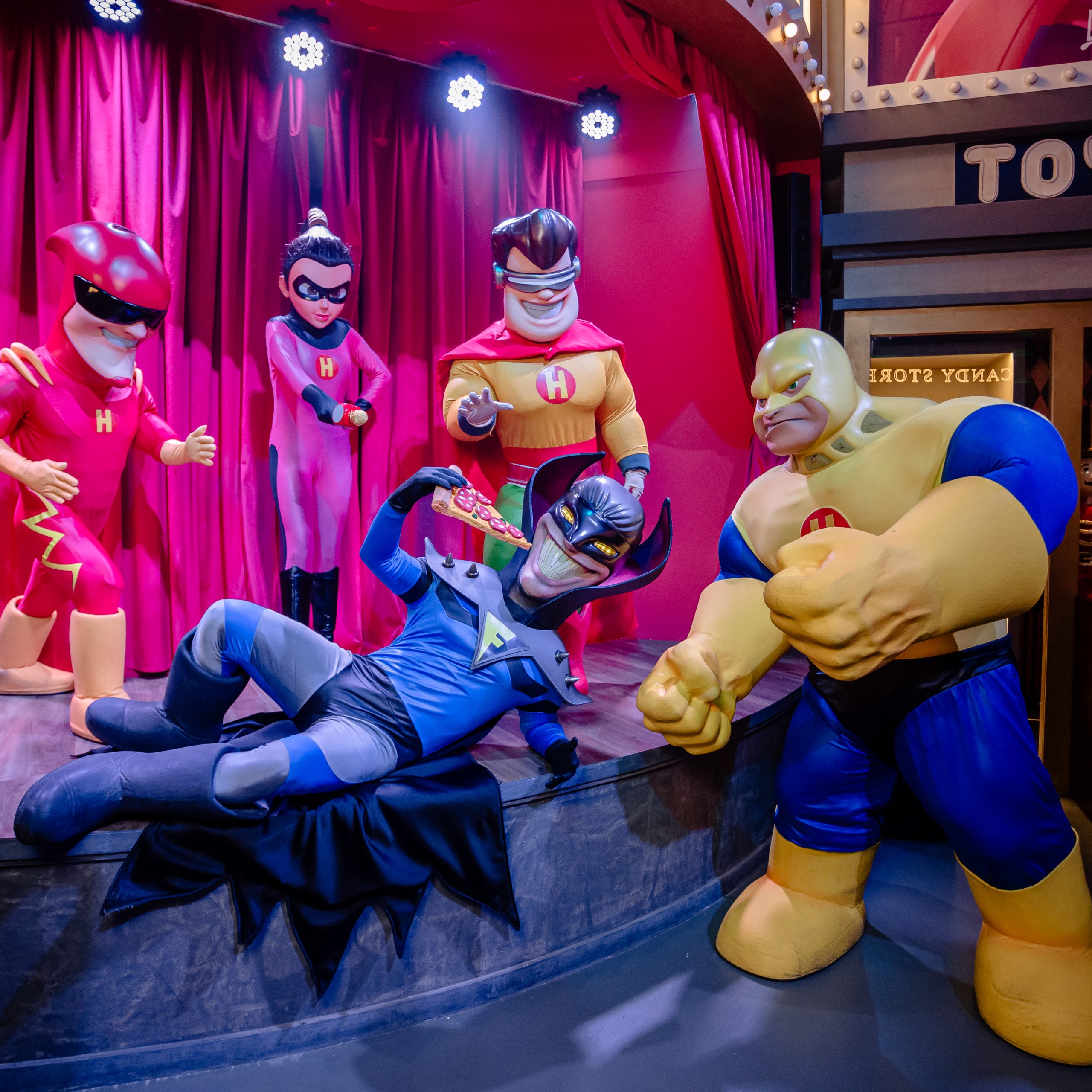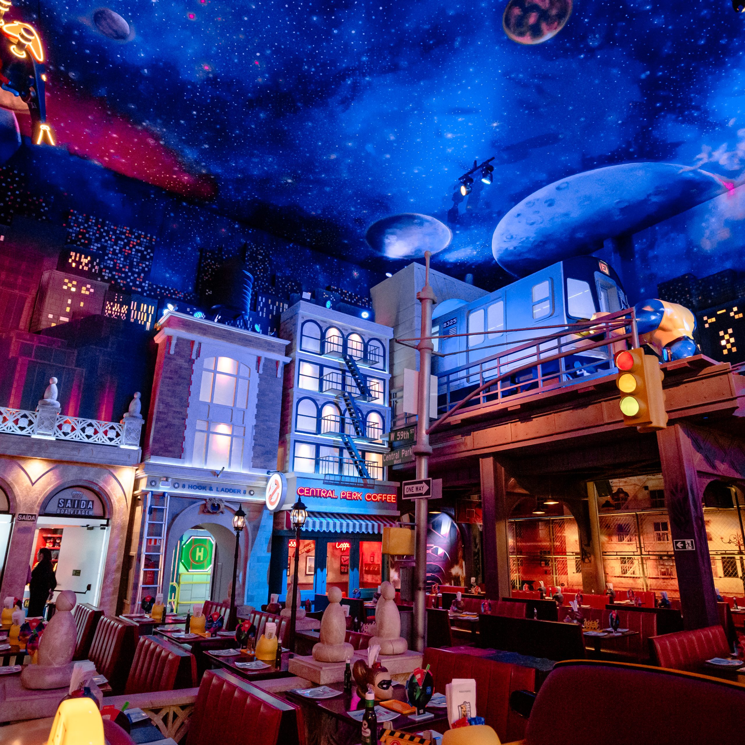 • A ambientação remete às ruas de Nova York, com elementos urbanos, grafites e luzes que criam uma atmosfera envolvente. A experiência ainda é enriquecida com aparições de heróis e uma decoração que mistura o universo geek com a vibrante estética nova-iorquina.