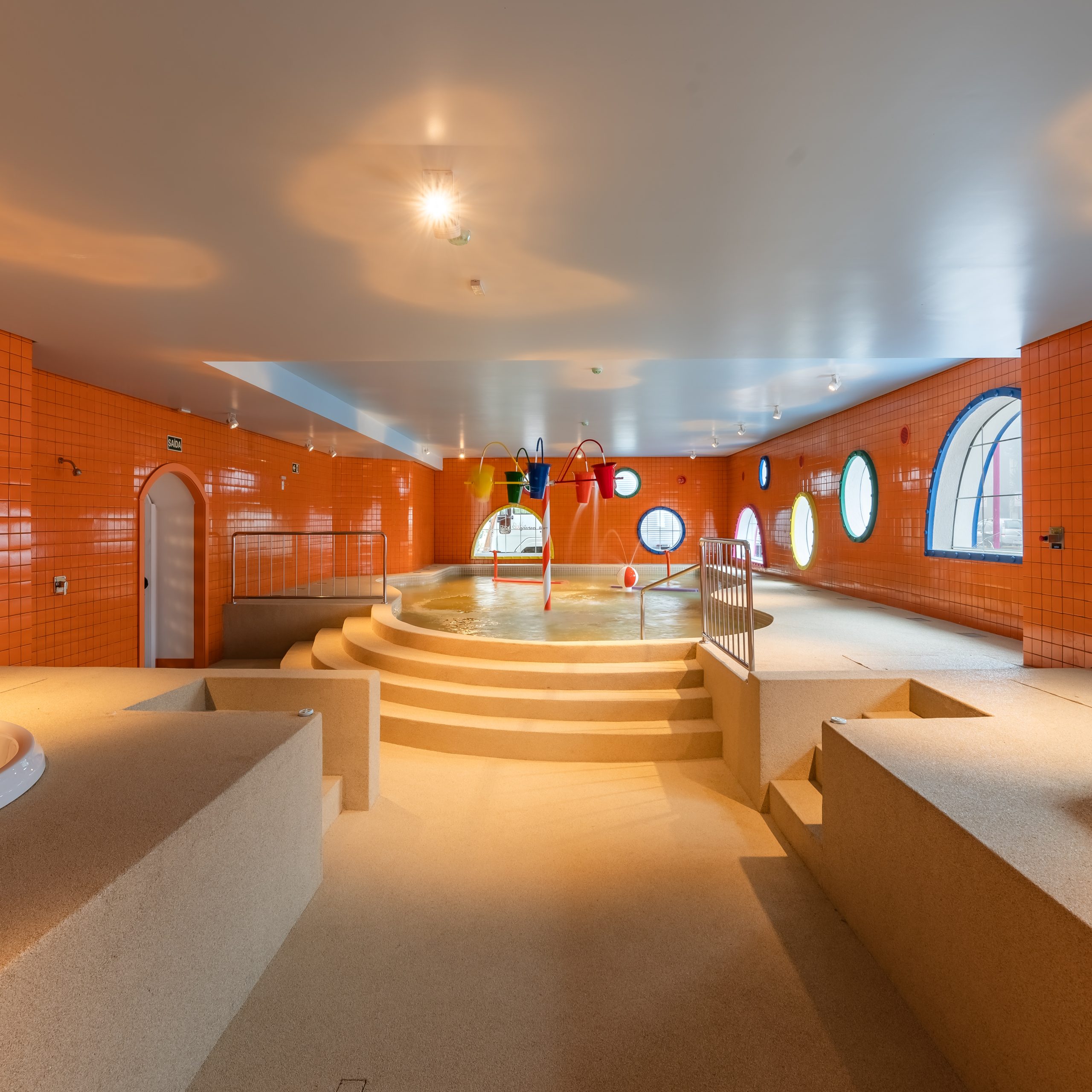 Play Molhado, com piscina aquecida, brinquedos e jacuzzis para diversão em família.