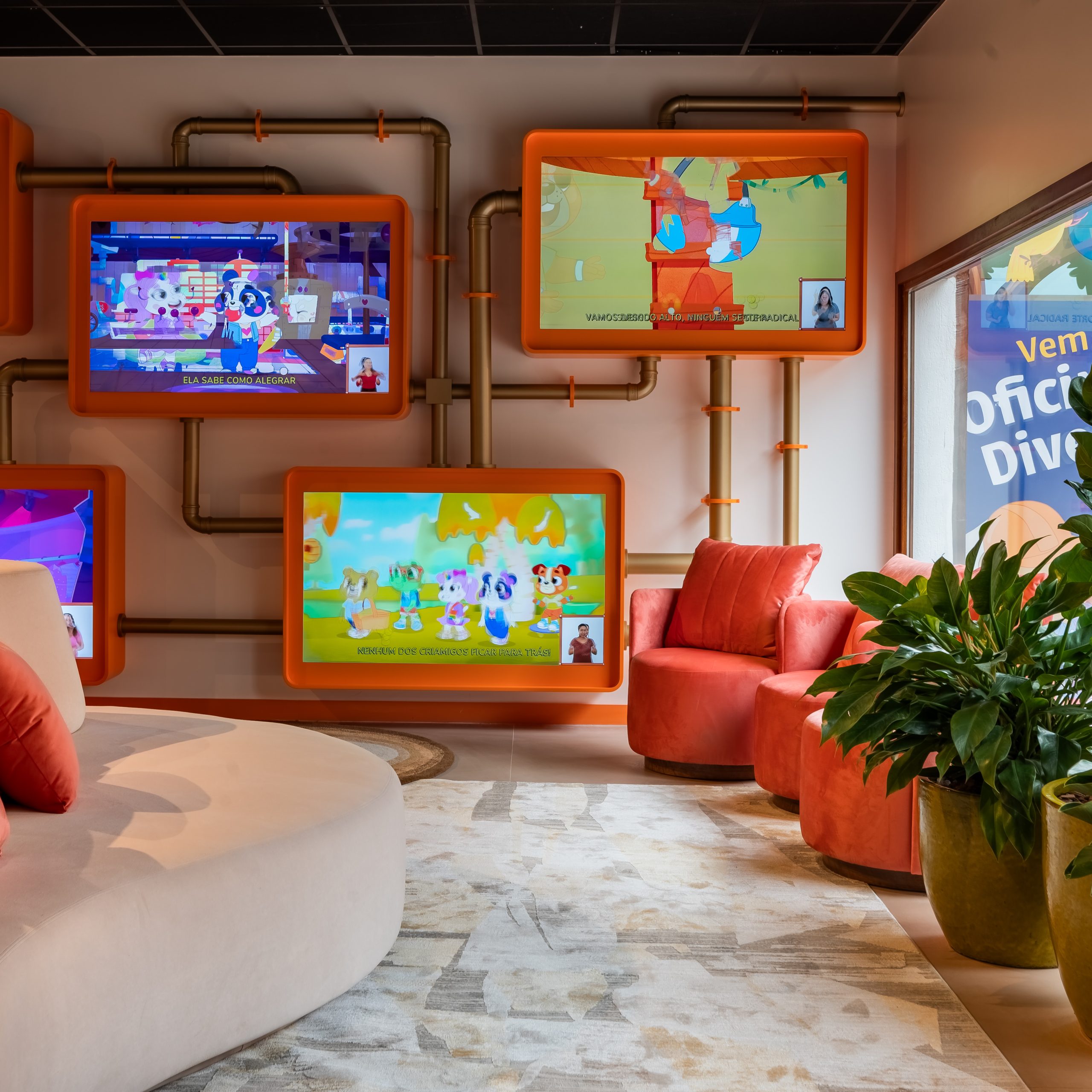 Parque Criamigos / Oficina da Diversão, um espaço de entretenimento com mais de 7 mil m² e mais de 50 atrações interativas, imersivas e sensoriais, inspiradas nos personagens do Clubinho Criamigos.