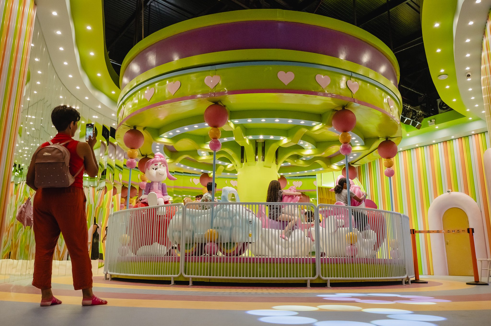 Arco-Íris da Unibrilho: carrossel de unicórnios, balada neon e oficinas artísticas no escuro.