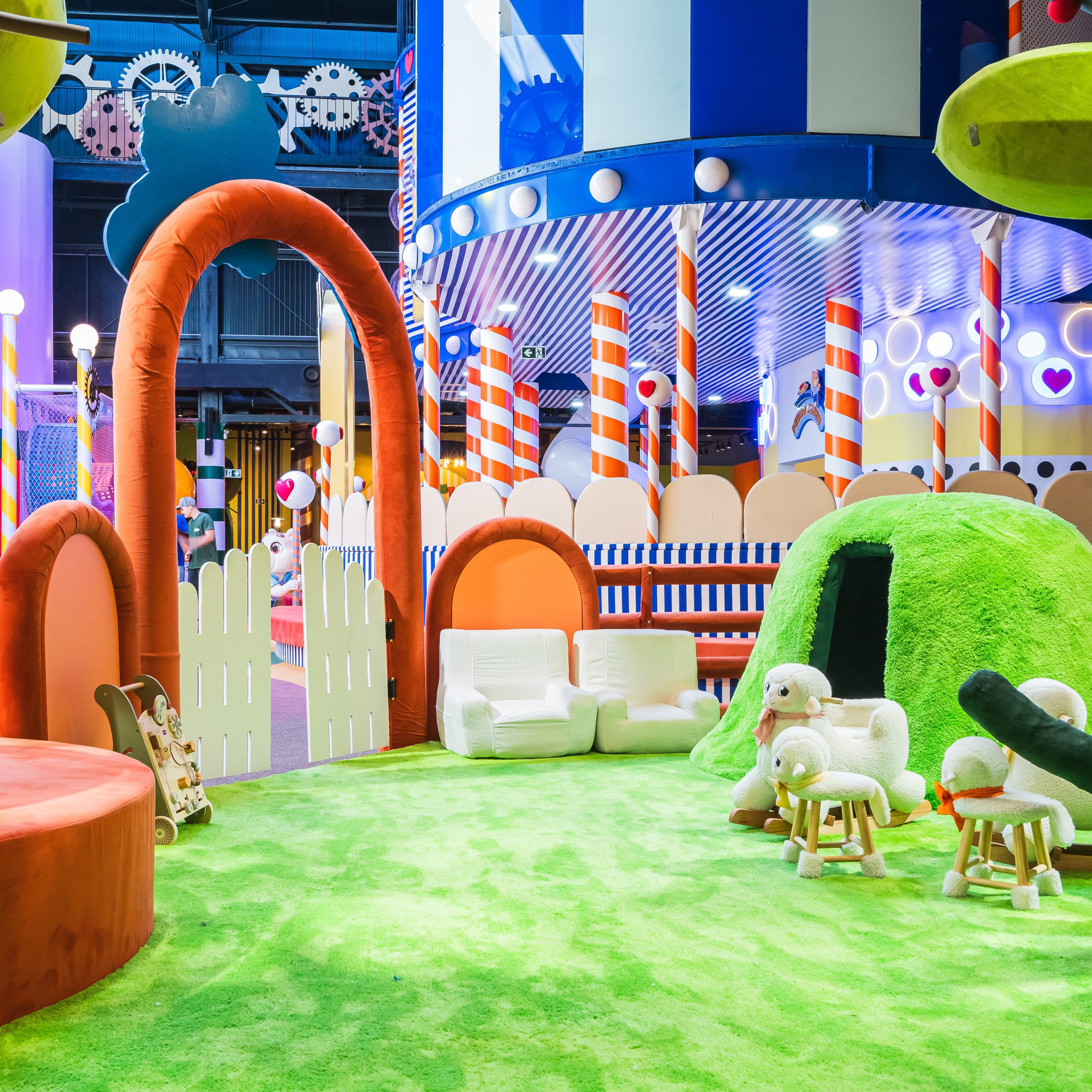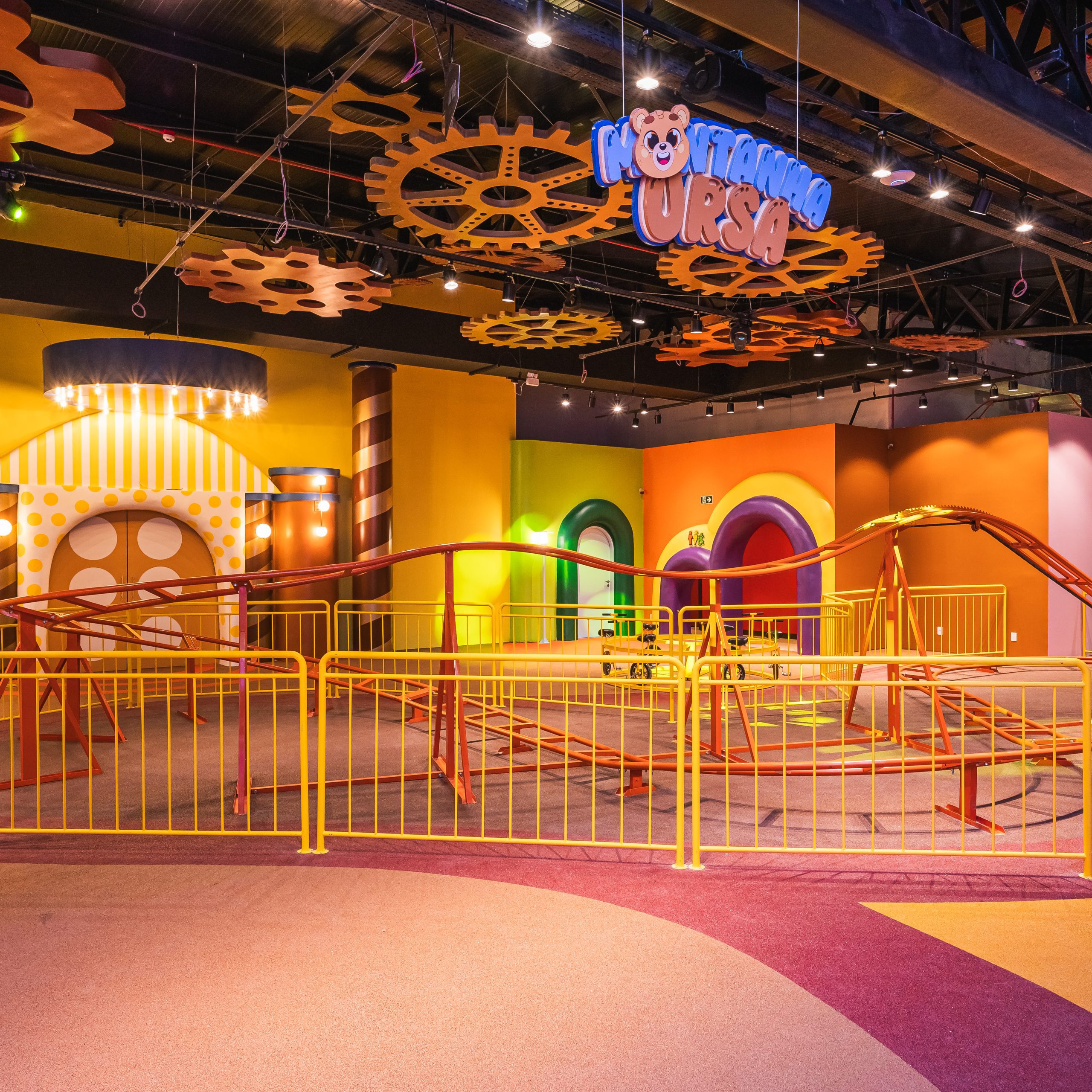 Confeitaria do Pedro Pudim: arremesso de pudim, escorregadores, montanha interativa e piscina de ursos.