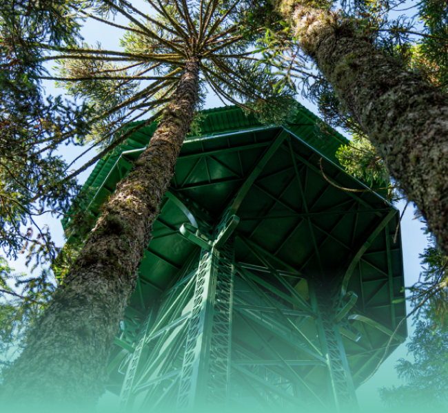 Observatório Panorâmico: Torre de 27 metros de altura, restaurada e ambientada para simular uma escalada em um tronco de araucária, oferecendo vistas deslumbrantes da região.