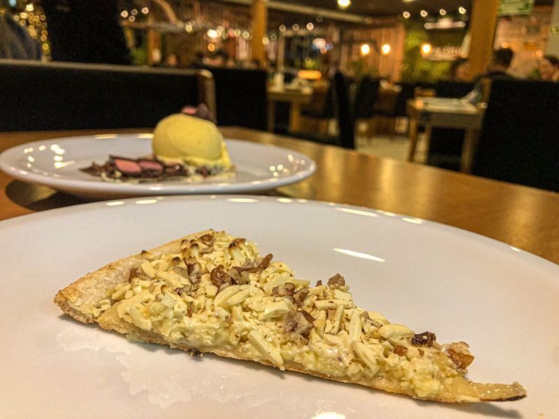 A pizzaria também oferece opções vegetarianas, além de sobremesas artesanais, vinhos selecionados e cervejas artesanais da região.